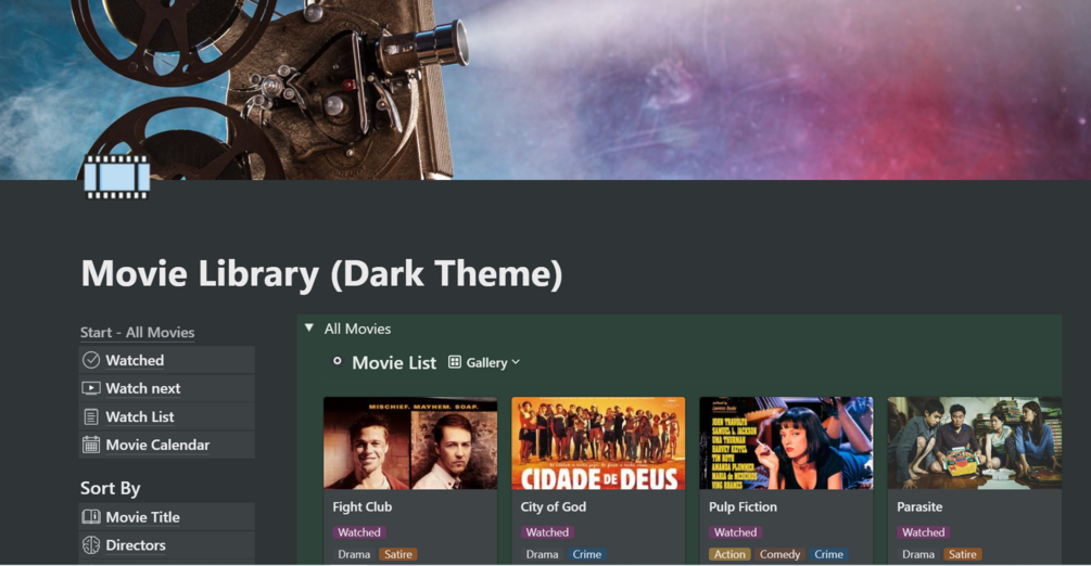 Are you a movie aficionado searching for the perfect solution to organize your film collection and delve deeper into the world of cinema? Look no further! The Movie Library template, available exclusively on Notion, is just what you need.