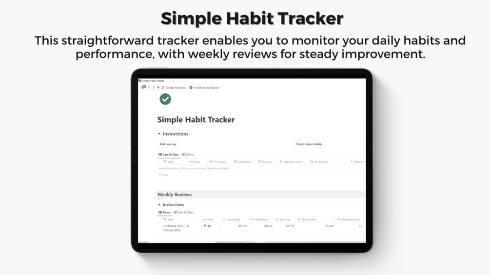 - Simple Habit Tracker: Sometimes, simplicity is key. This straightforward tracker enables you to monitor your daily habits and performance, with weekly reviews for steady improvement. (Typical Value: Free)