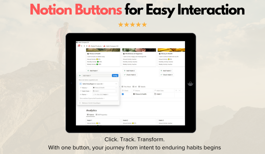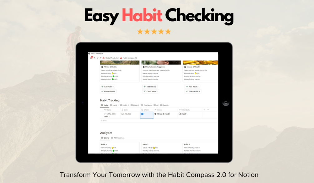 The Habit Compass 2.0 for Notion isn't merely a tracker. It’s a promise—a commitment to the life you've always envisioned. And with this tool, every day is a step towards that dream.