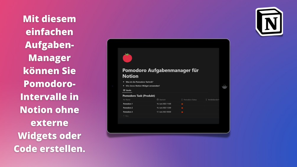 Pomodoro Zeit- und Aufgabenmanagement für Notion (Deutsch)