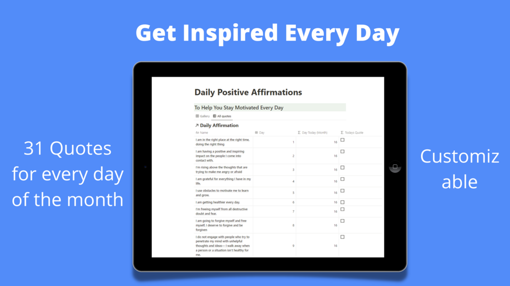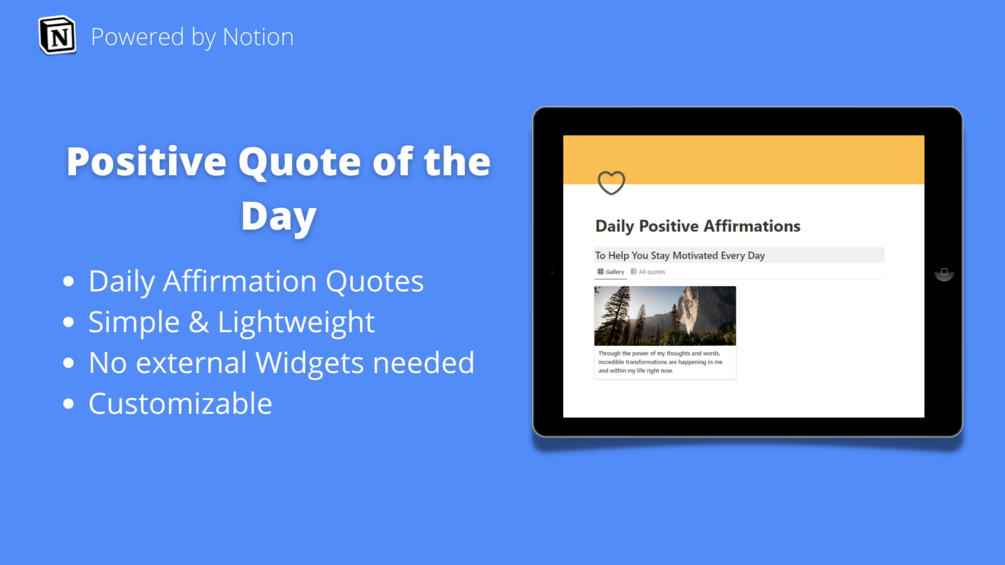 Daily Positive Quote - Be inspired by an inspirational affirmation every day (Notion Template)